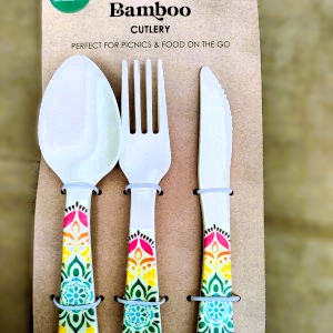 Ideal for lunch on the go, festivals, camping or just anywhere. Brightly coloured Mandala design makes there eco-friendly cutlery sets fun as well as good for the environment. Bamboo fibre is strong but light and sustainable. Amazingly resilient and feel good to the touch. Share the love and buy for a friend too.