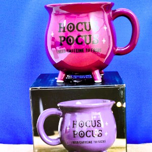 For the witches and wizards who need a bit of a buzz to get going, this large mug in the shape of a cauldron is a perfect size to get you going. Designed with the words ‘Hocus Pocus – I need caffeine to focus’ in black writing on an attractive purply/burgundy colour mug.