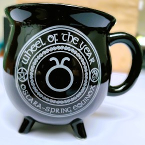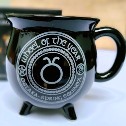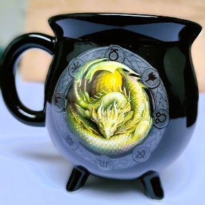 Spring, the time of new beginnings with new growth all around. Ostara, the dragon representing new beginnings and the spring equinox is depicted on this beautiful mug. The mug changes colour to reveal Sabbat symbols surrounding the dragon’s snake like head like a halo when you fill it with your hot drink. This gorgeous design by Anne Stokes is part of a set portraying the seasons celebrated in pagan festivals.